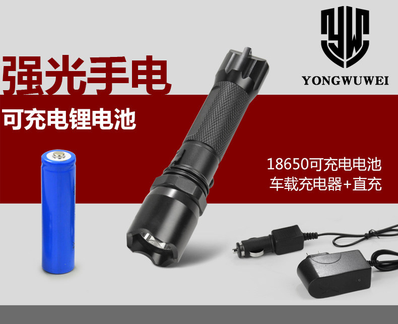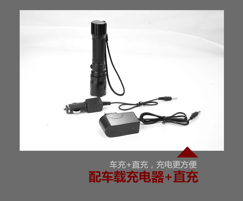 勇无畏强光手电三代强光防身户外手电筒强光手电套装直充车充套装