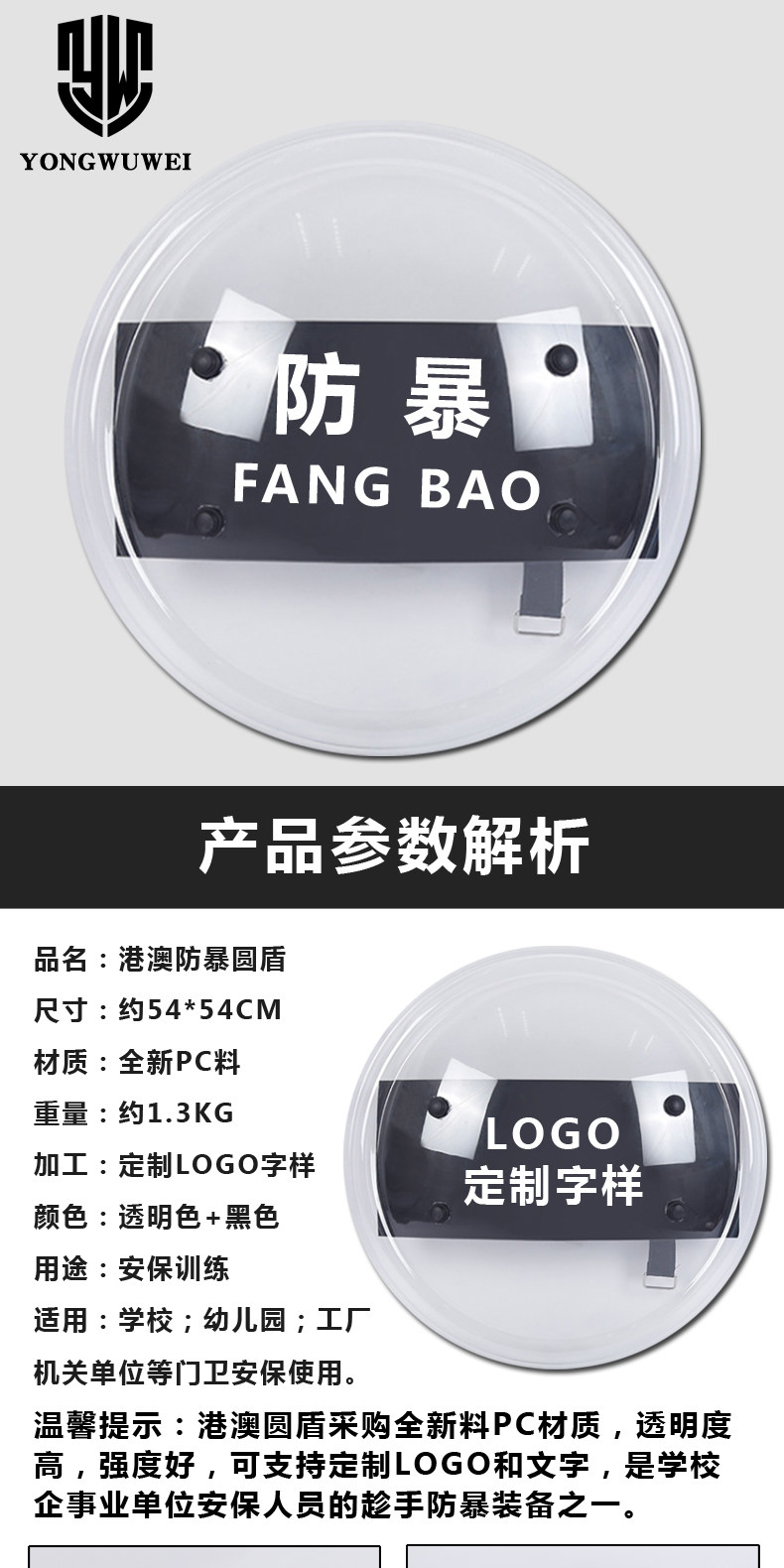 港澳防爆防暴盾牌保安手持PC圆盾牌校园门卫执勤防护装备安防器材