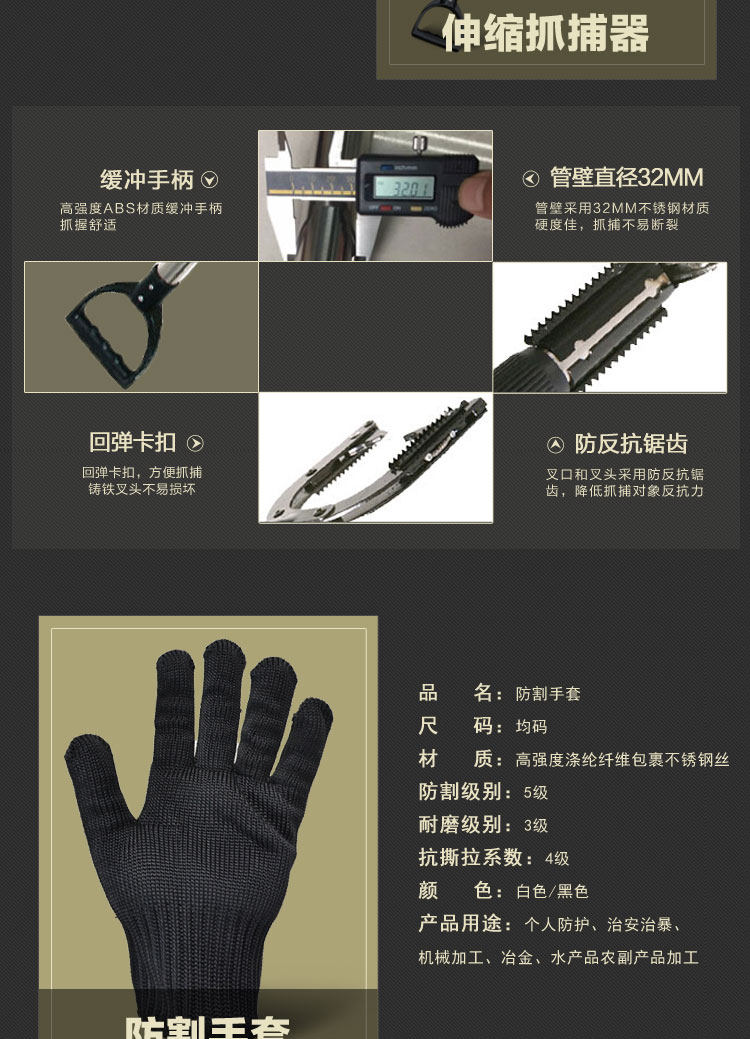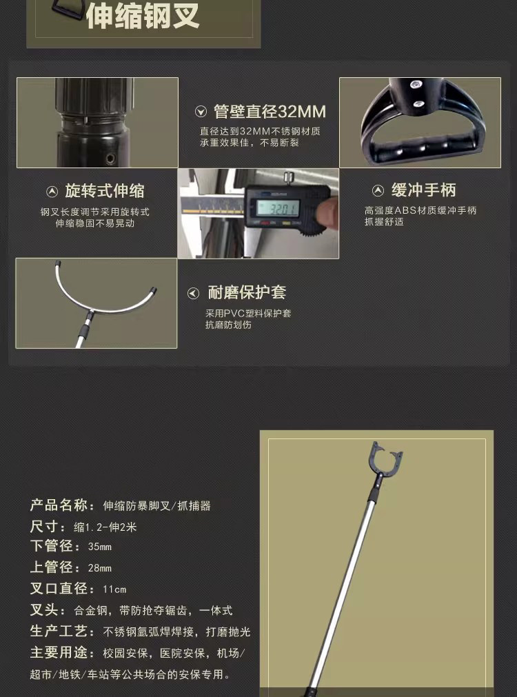自动铝合金防暴防爆钢叉脚叉腰叉保安器材可伸缩抓捕器安防装备