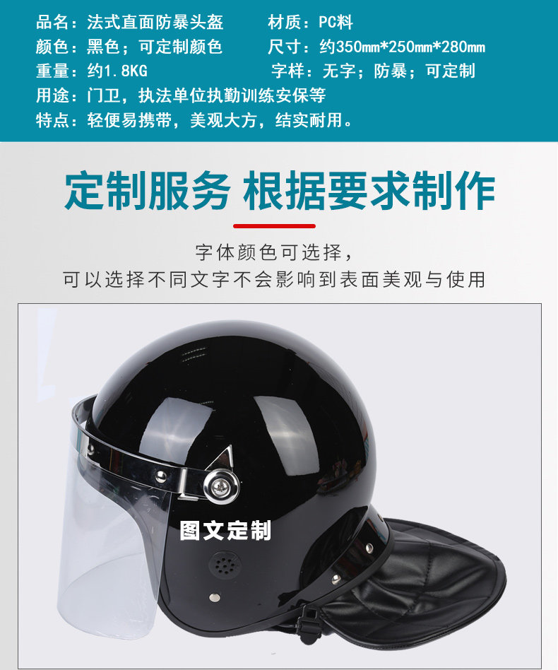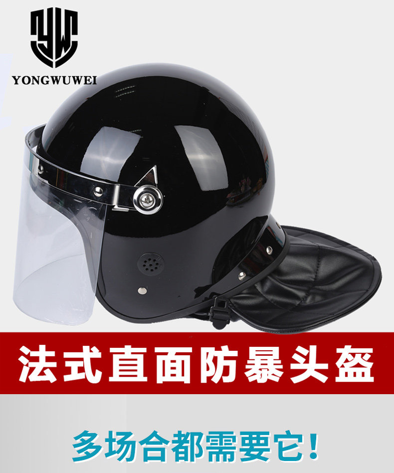 勇无畏法式防爆防暴头盔防护帽直面带面罩安保执勤防护巡逻头盔