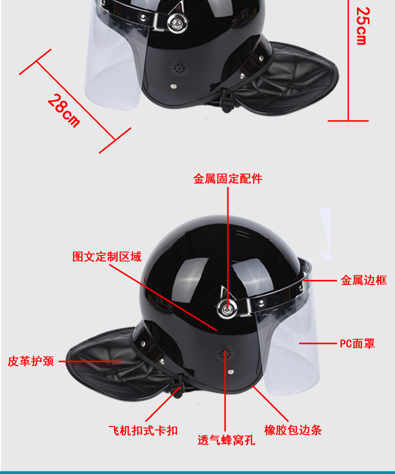 勇无畏德式防爆防暴头盔防护帽钢丝网带面罩安保执勤防护巡逻头盔