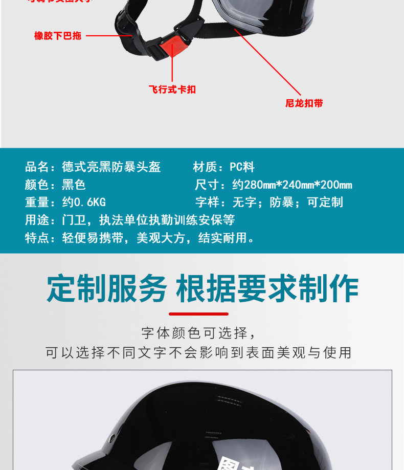 勇无畏德式防爆防暴头盔防护帽钢丝网带面罩安保执勤防护巡逻头盔