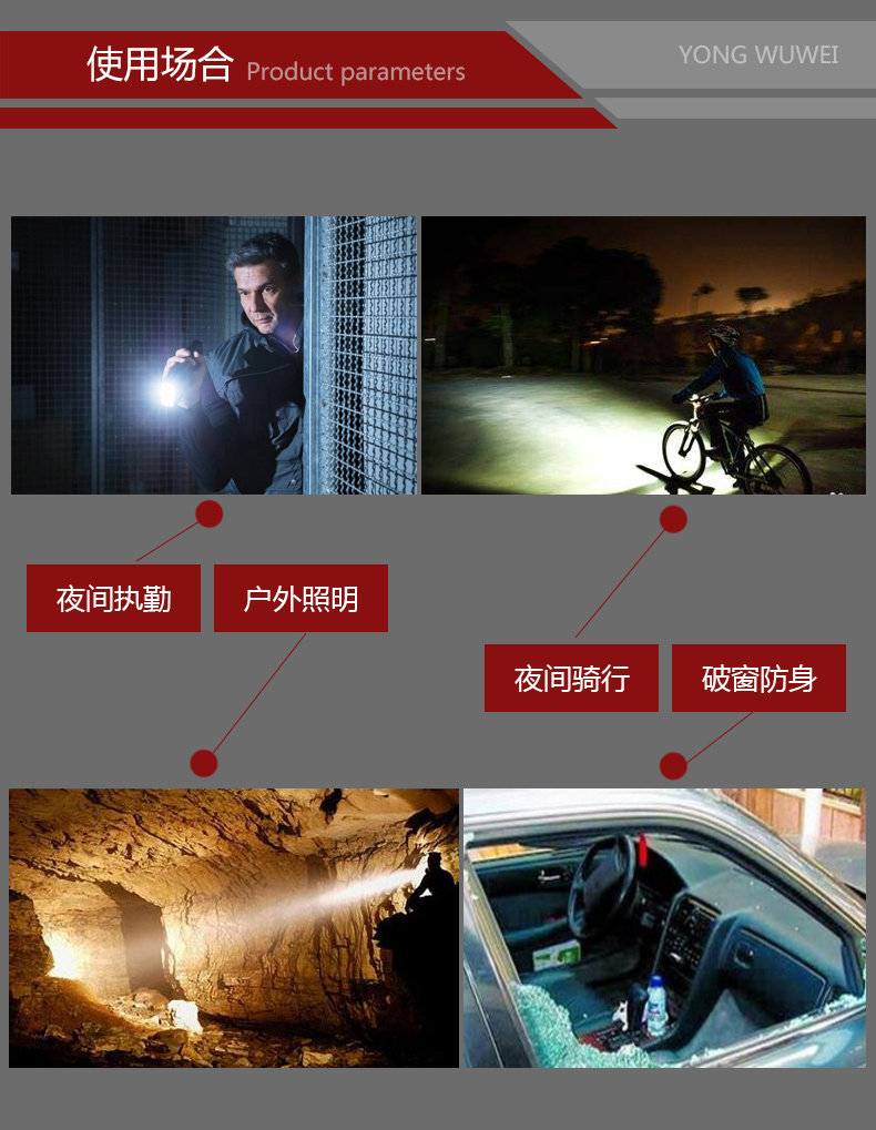 勇无畏强光手电三代强光防身户外手电筒强光手电套装直充车充套装