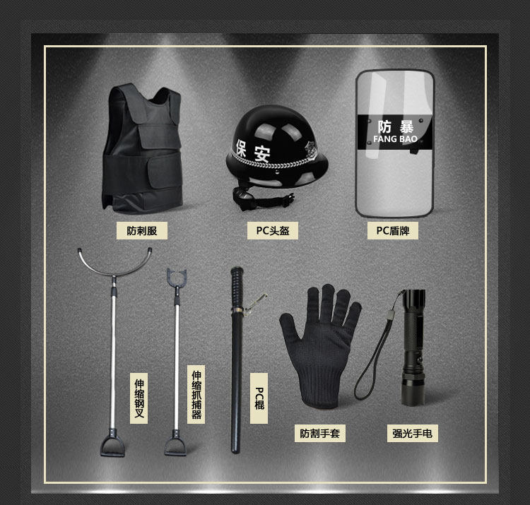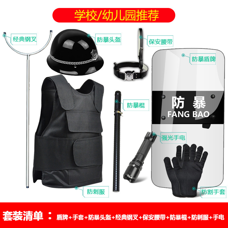 八件套防爆学校幼儿园安保器材盾牌头盔钢叉反恐防暴套装保安装备